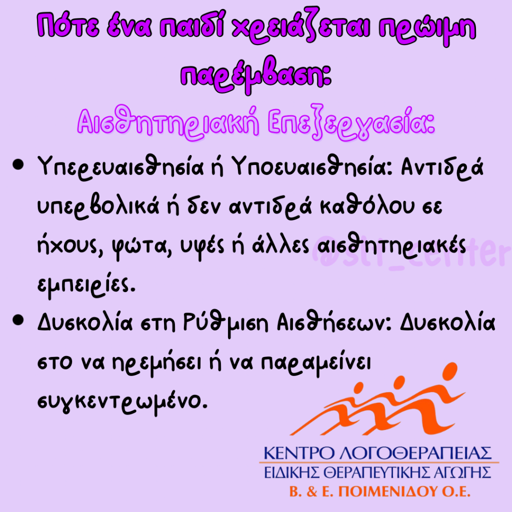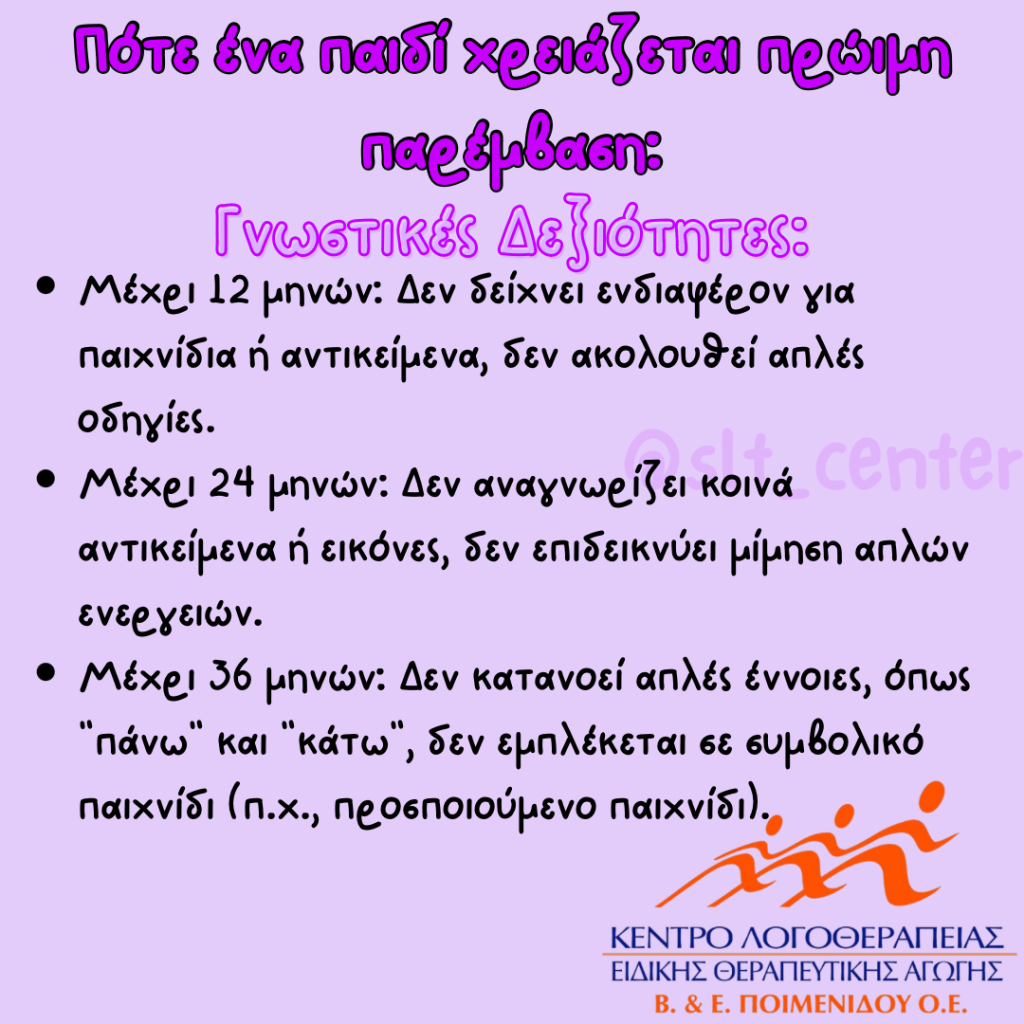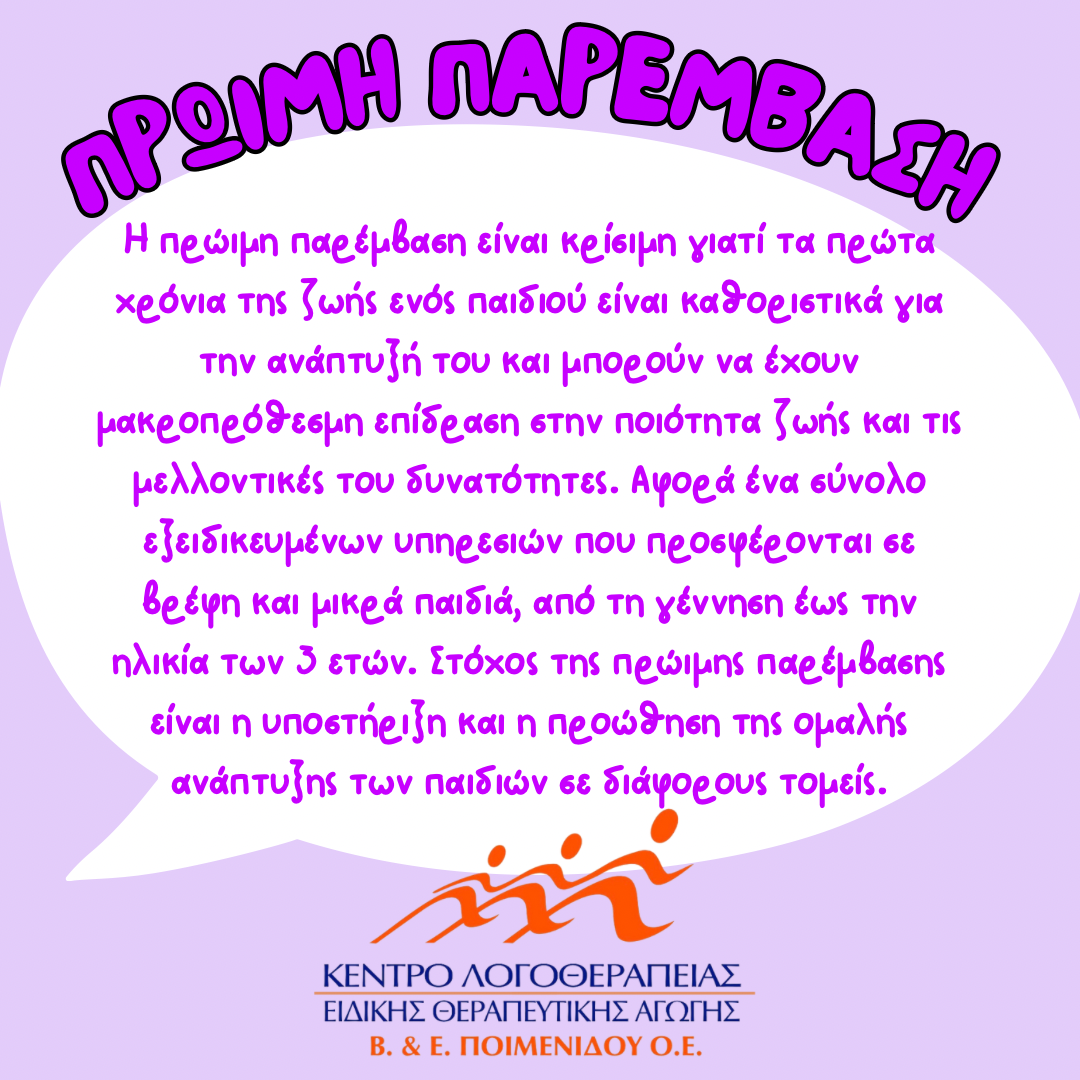 Η πρώιμη παρέμβαση είναι κρίσιμη για την εξασφάλιση μιας ισορροπημένης και υγιούς ανάπτυξης, καθώς και για τη μείωση των πιθανών μελλοντικών δυσκολιών που μπορεί να αντιμετωπίσει το παιδί.