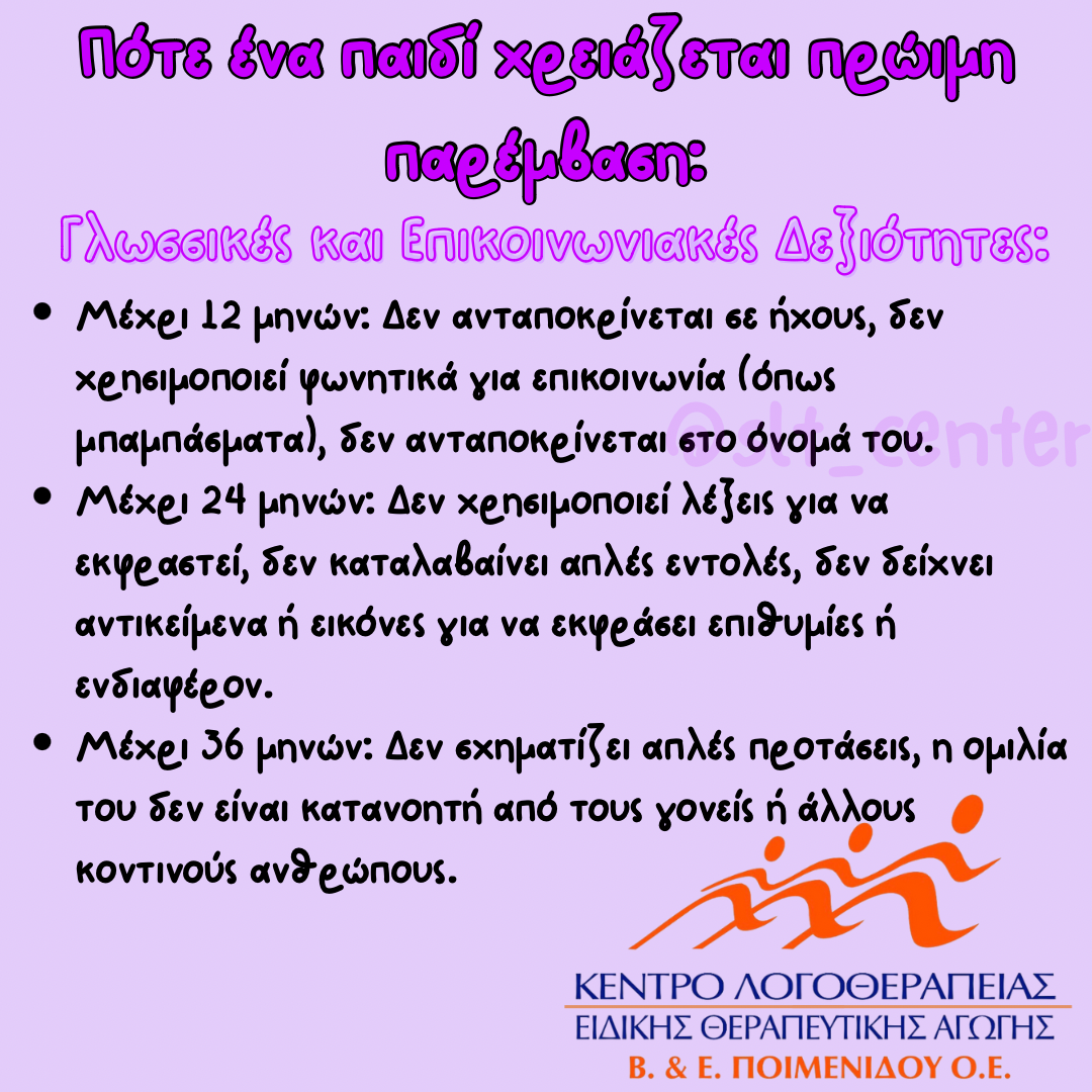 #Λογοθεραπεία #Εργοθεραπεία #Ψυχοθεραπεία #ΕιδικήΔιαπαιδαγώγηση #Συμβουλευτική #Θεραπεία #ΘεραπευτικήΑγωγή #ΤεστΔυσλεξίας #Μαθησιακές_Δυσκολίες #Διαταραχές_Φωνής_Ροής_Άρθρωσης #πρώιμη_παρέμβαση #speechpathology #ΠρώιμηΠαρέμβαση